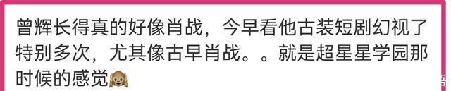 而穿上古装,在某一些角度,非常的神似肖战,于是不少网友们调侃,曾辉的出现就是在弥补短剧中没有肖战的短板。