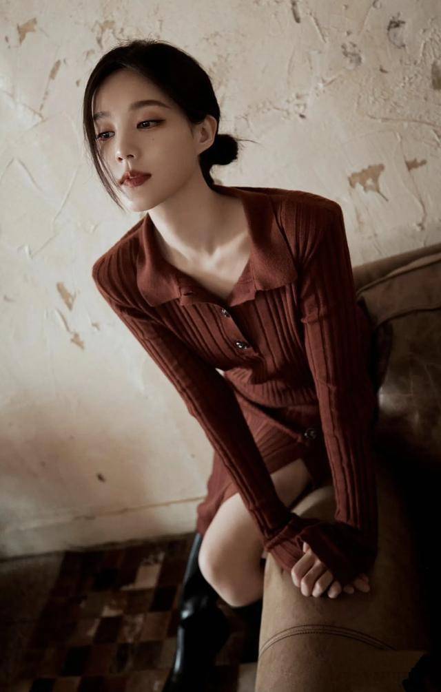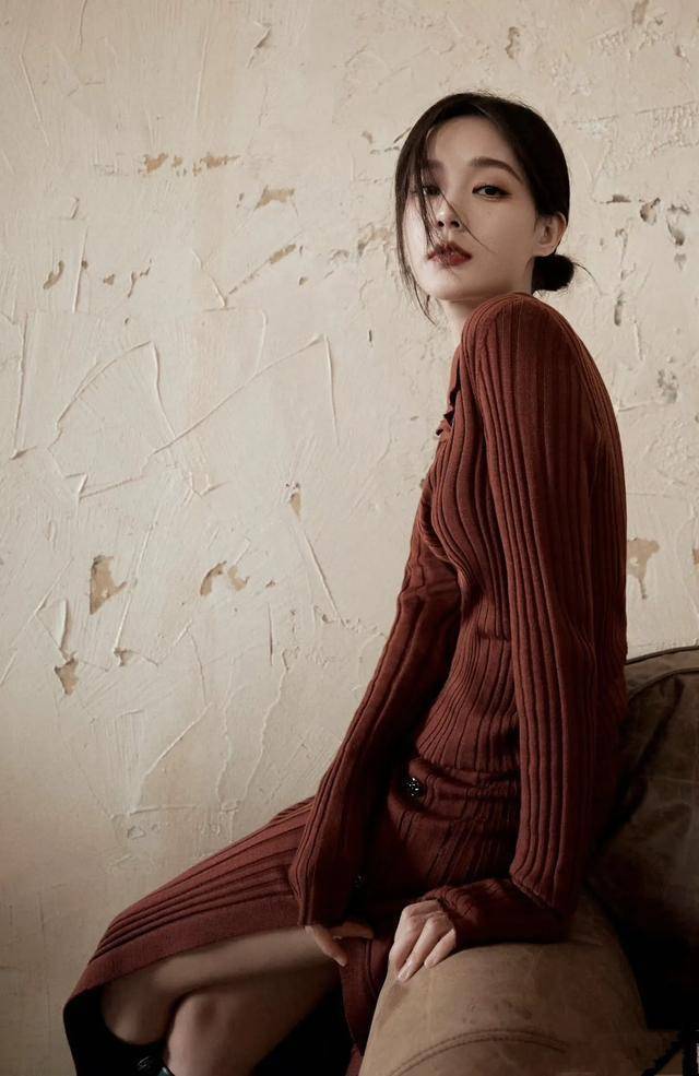 只见她身着酒红色的针织裙,这款裙装尽显她的曼妙身姿。李一桐的美貌精致且脱俗,明亮的眼神中带着幽幽之情。这一款酒红色的裙装虽然保守,但她依然能够穿出不同的味道。